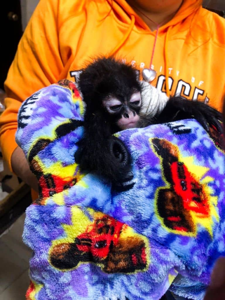 En el caso del mono araña, se estima que se trata de una cría de aproximadamente de dos a tres meses de edad; esta especie depende del cuidado materno por al menos tres años desde su nacimiento, por lo que la separación constituye un acto de maltrato que compromete su desarrollo físico, conductual y su viabilidad biológica.