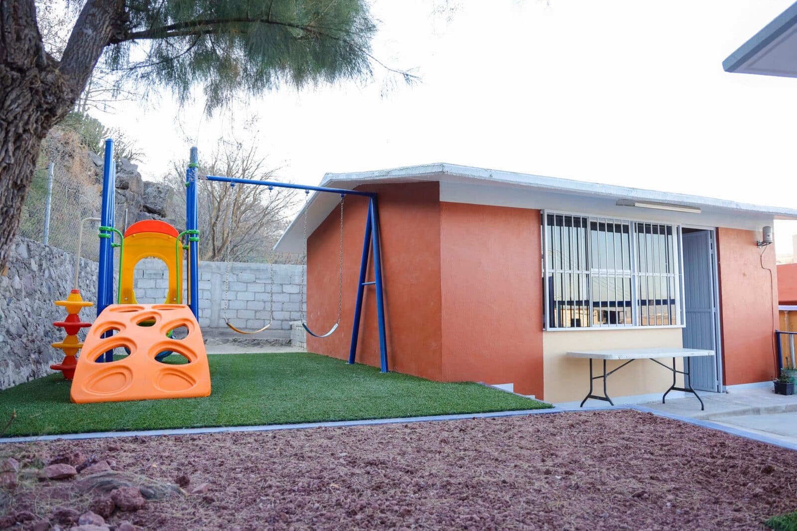 En cuanto al módulo sanitario, explicó que cuenta con mamparas divisorias e instalación hidrosanitaria para el funcionamiento de dos inodoros para adultos, cuatro inodoros infantiles y cuatro lavabos. Además, en el área lúdica se instaló un módulo de juegos infantiles y pasto sintético, así como una malla sombra sobre estructura metálica en el patio principal.