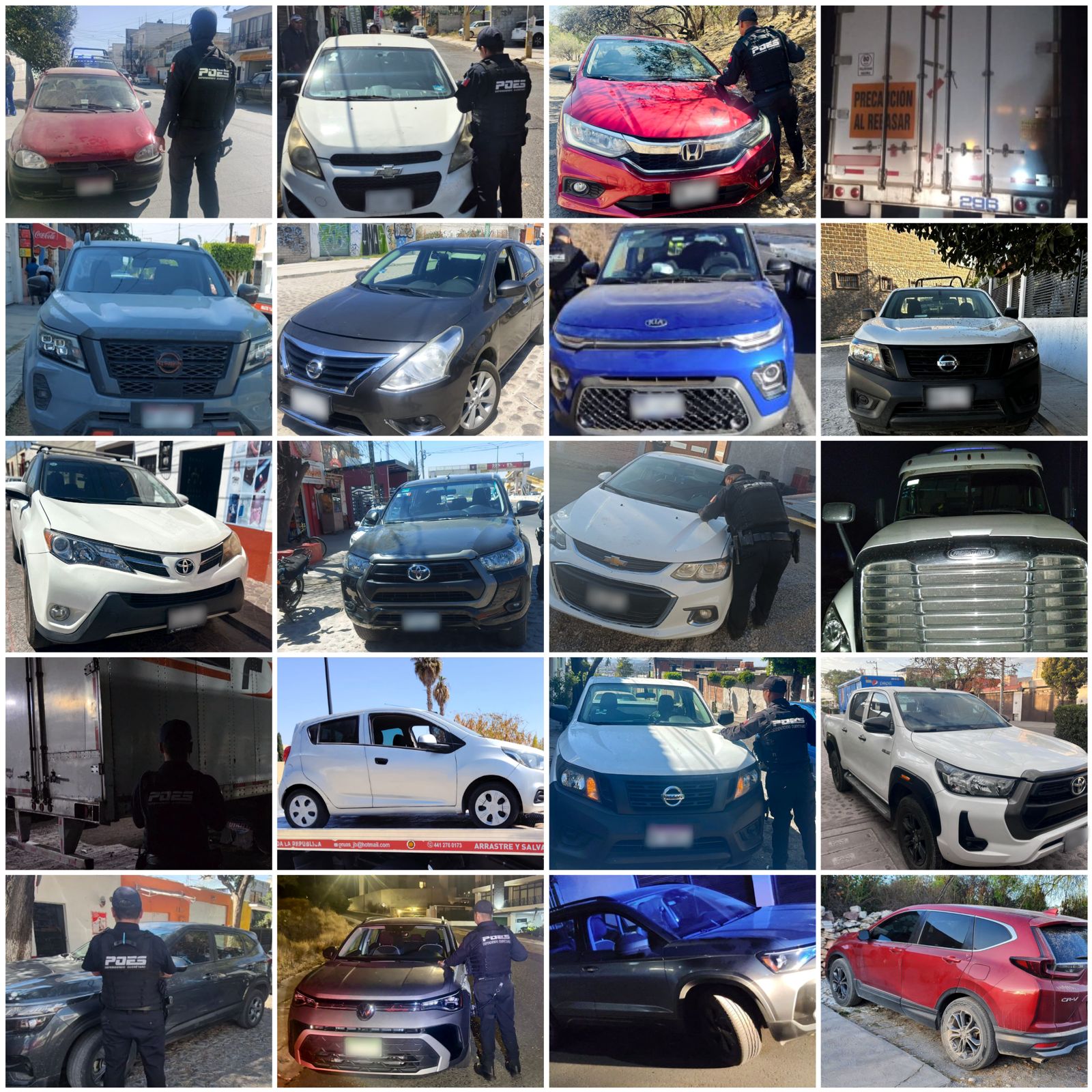 Fueron 20 automóviles, camionetas, tractocamiones y cajas secas los detectados en diversos hechos, y tras confirmar contaban con una carpeta de investigación abierta por robo se aseguraron.