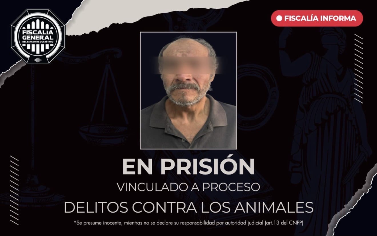 La Fiscalía General del Estado de Querétaro obtuvo la modificación de la medida cautelar a prisión preventiva justificada en contra de Ernesto David “N”, imputado por delitos contra los animales, derivado de hechos ocurridos en el municipio de Pedro Escobedo.